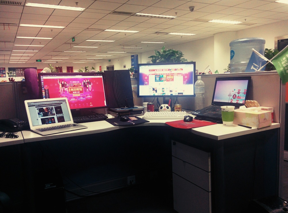 看我的办公位,能看出我挺忙的吧!屏幕多,才能更好的监控和处理问题。