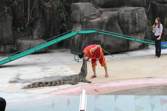 鳄鱼岛,人真多啊,节目很多,票价30元,值! 鳄鱼表演,狗熊与狗表演,鹦鹉表演,小猪运动会等,很有意思。