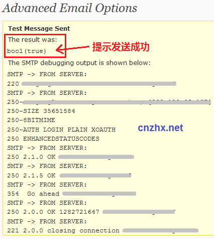 如果发送成功,结果就显示为“bool ( true )”,否则就是发送失败。