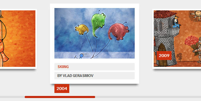 这是一款基于jQuery和CSS3的图片悬浮特效,鼠标滑过图片后,图片将悬浮突出显示,并且,整个图片相册是自定义滚动条,非常漂亮,支持滚轮。