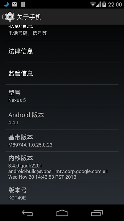 3、确定您现在的 Nexus 5 的安卓版本号为 KRT16M,然后下载的谷歌 OTA 包:点此从 Google 服务器下载;