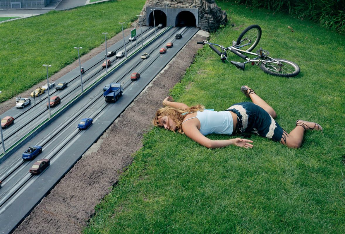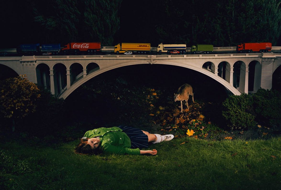 她对自己作品描述道:“《Teenage Stories》其实是我对小女孩时回忆的重现,当时我在和妹妹们一起聊小时候的事情:在宾夕法尼亚州长大,然后搬家到陌生的德国,在那里,三个小女孩如 何无忧无虑地做白日梦,一起打发时间。我突然意识到,随着年龄越来越大,已经再没有可能重现那一种生活。这组作品的起始点便来自于我对那段女孩生活的观察视角,我希望捕捉到一些孩子才有的幻想与白日梦的感觉,将它们展现于画面之中。当我第一次看到微缩城镇的模型时便立刻知道,这就是我想要的最完美的拍摄背景——环境本身的奇异刚好与女孩在陌生环境里的生疏、好奇形成共鸣,营造出一种白日梦的气氛。画面上这些微型城镇里的女孩与周遭环境的交流就如同在真实世界中一样,在一个特别的小镇、一个特别的街区、一栋特别的房子里,在自己的幻想与梦境里生活。”